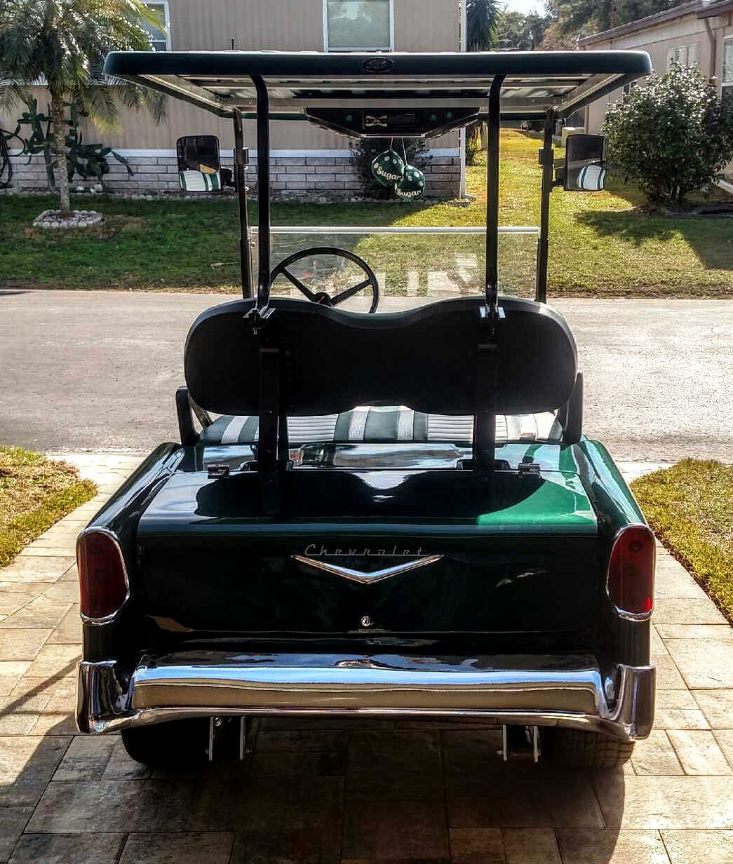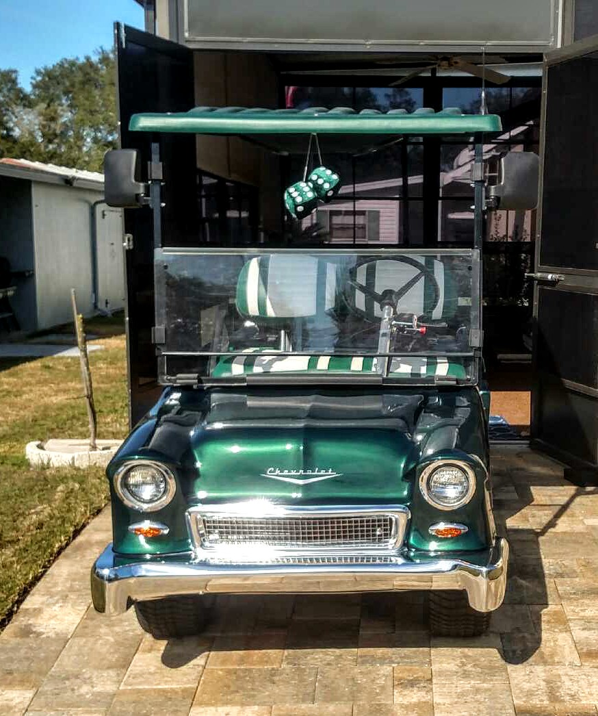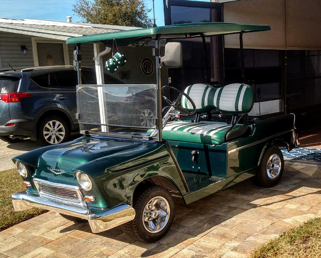 This ’55 Classic Tail Fins is a craftsman-built custom golf cart body kit that comes in a smooth gel coat finish. The parts and accessories for this classic car are delivered right to your door for a simple DIY conversion of your current golf cart into an amazing ’55 Classic Tail Fins Golf Car!