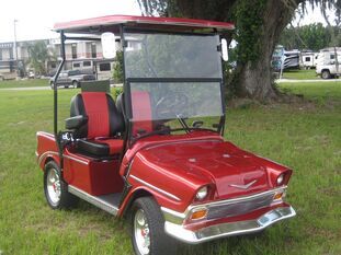 This ’56 Classic Tail Fins is a craftsman-built custom golf cart body kit that comes in a smooth gel coat finish. The parts and accessories for this classic car are delivered right to your door for a simple DIY conversion of your current golf cart into an amazing ’56 Classic Tail Fins Golf Car!
